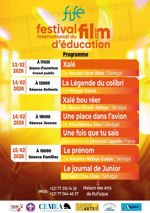 La Maison des arts Khar Mbaye Madiaga a abrité, en ce début février, la première édition sénégalaise du Festival international du film d’éducation (FIFE). Porté par la coopération entre les Ceméa Pays de la Loire, Rufisque, et la maison des éclaireurs, l’événement a rassemblé jeunes, familles et professionnels du cinéma autour de projections-débats. Le journal le quotidien du Sénégal est revenu sur ce rendez-vous inédit.