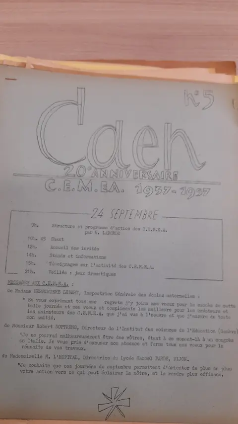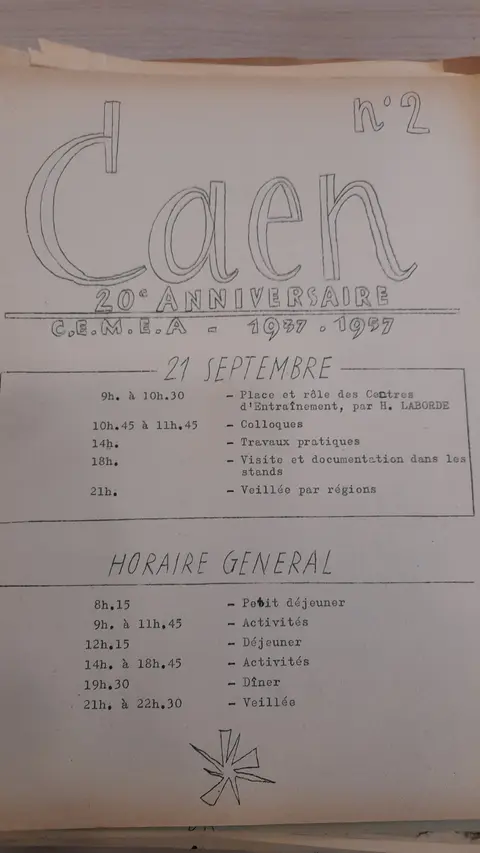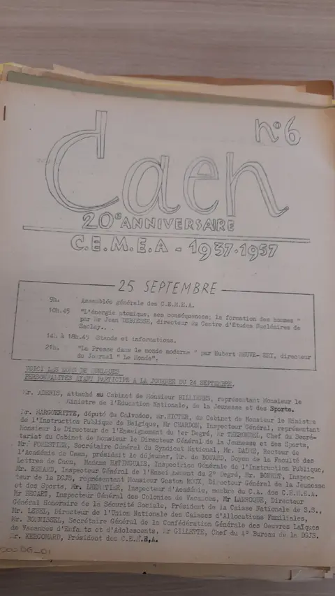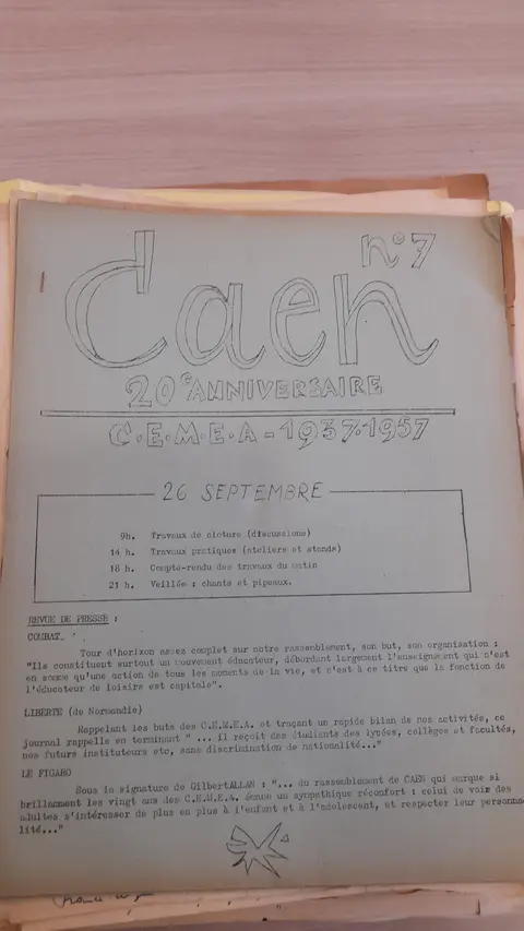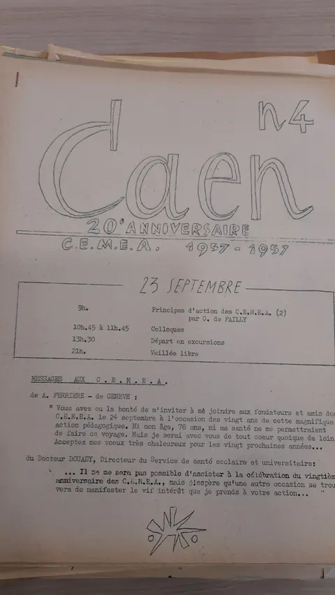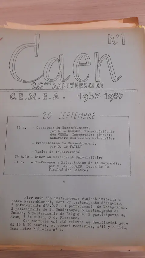 Du 20 au 26 septembre 1957 se réunissaient à Caen, 600 congressistes pour le 1er Congrès de l'histoire des Ceméa, nommé "rassemblement" à l'origine. Gisèle de Failly y exprime les principes qui fondent l’action des Ceméa.
